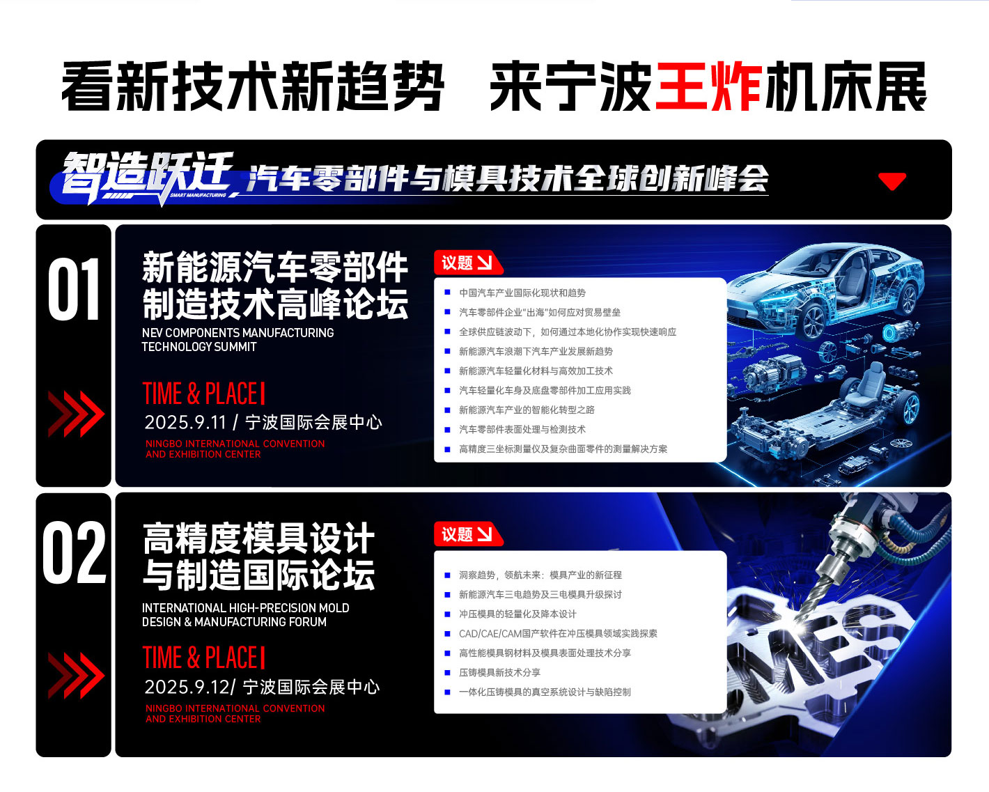 2025届CMES华机展|宁波国际机床展应用升级,将于9月11-13日盛大开启。为精准匹配宁波本地产业需求,本届展会聚焦“模具制造、汽车零部件、小家电制造”三大重点产业应用,锚定液压传动、石油装备、螺杆制造、阀门制造等细分领域设备加工需求,携手500+家展商全面展示从精密加工到智能工厂的全产业链机床设备及创新方案。