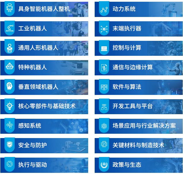 从机器人原材料及零部件供应商、系统集成商、仿真及测试到整机制造,覆盖具身智能机器人全产业链。联动参展企业的核心价值,串联有效应用场景,从产业到终端,促进产业链供应链畅通,不断融合升级,积极推动整个行业创新技术高质量供给。
