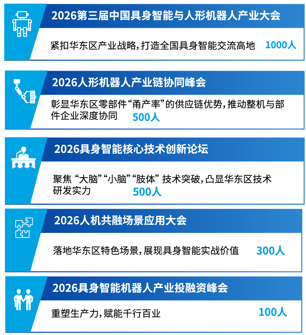 为了推动全球人工智能与具身智能的创新发展、应用前景以及面临的挑战和机遇,2026第三届中国具身智能机器人产业大会暨展览会(杭州)将于2026年3月11-13日在杭州国际博览中心(G20主场馆)举办。