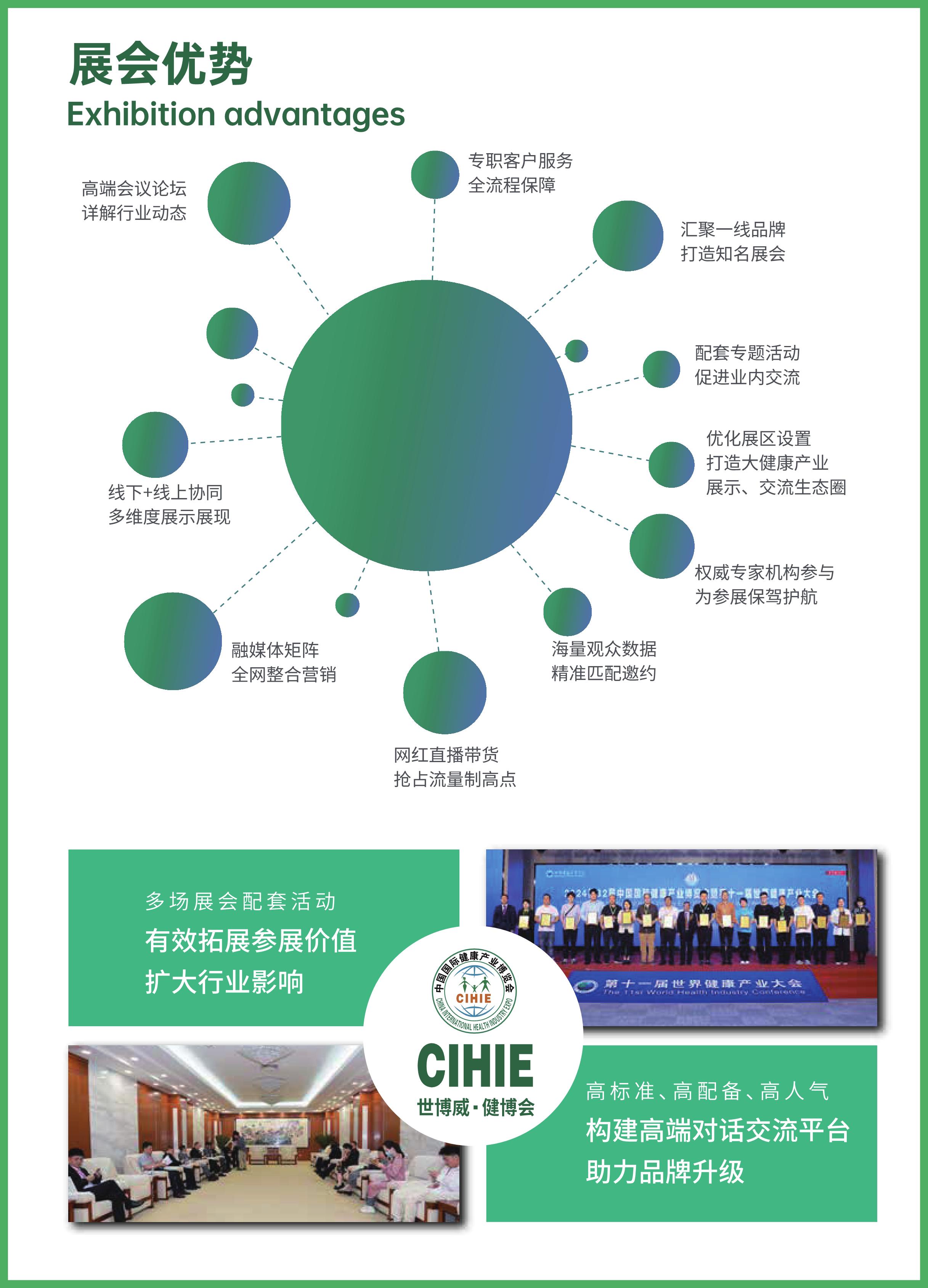 中国国际健康产业博览会(简称"CIHIE健博会"),是经商务部批准报备的大健康行业主题展会。CIHIE健博会始创于2003年"SARS"之后,2004年5月在北京首展举办,截止目前已成功举办了34届,被业界广泛誉为大健康行业发展的"晴雨表",备受业内领导、专家、企业、客商的高度认可和一致好评,连续多年被商务部评定为"全国重点引导支持展会"品牌项目。
