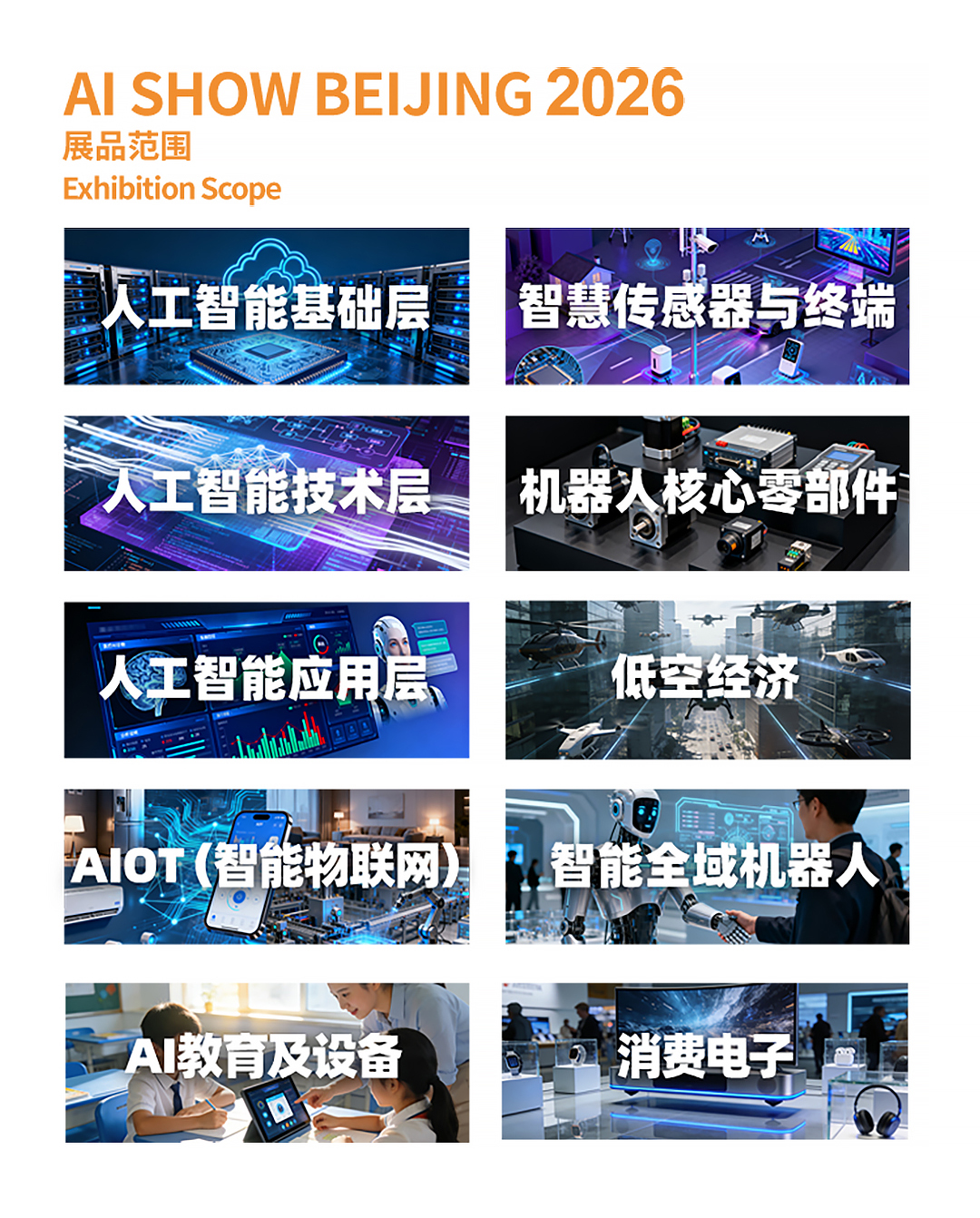 北京国际人工智能应用与机器人创新博览会(AI Show 2026)由北京人工智能学会、北京物联网智能技术应用协会、北京恒辉国际展览有限公司共同主办,北京电子商会协办。以“京聚全球智,AI创未来”为主题,30000㎡超大展区汇集全球450家知名品牌,5w+人次专业观众前来参观交流。展品涵盖人工智能基础层、人工智能技术层、人工智能应用层、智能全域机器人、AIoT(智能物联网)、机器人核心零部件、智慧传感器与终端、低空经济、AI教育及设备、消费电子等。博览会立足北京科创禀赋,聚焦全球前沿AI技术与落地应用,搭建“产学研用”协同创新平台,加速技术、人才与场景的深度融合,为北京建设全球人工智能创新高地注入强劲动力。