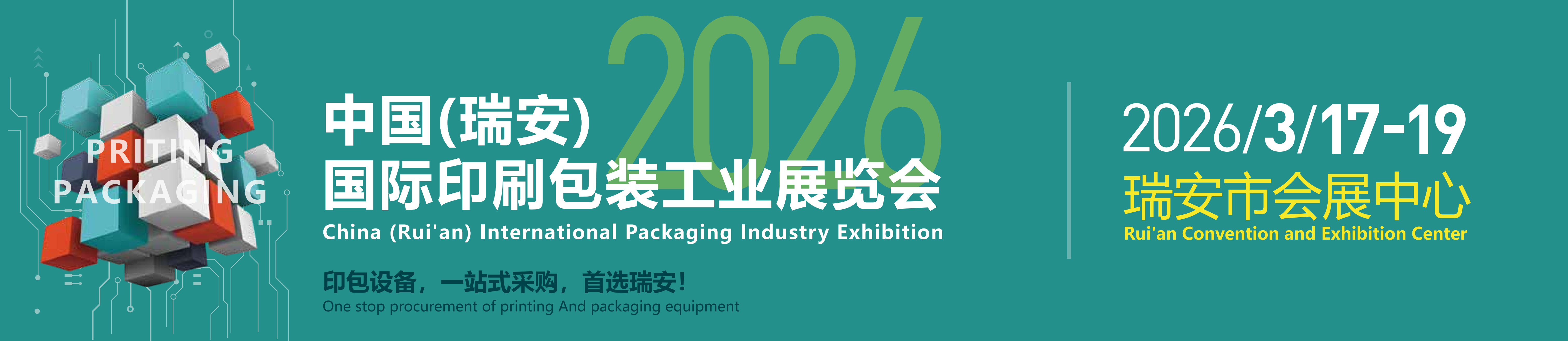 2026 中国(瑞安)国际印包工业设备展览会将于 3 月 17 日 - 19 日在瑞安市会展中心(瑞安市临湖路111号)举办,以 “打造印包基地展” 为主题,立足瑞安印包机械产业集群优势、辐射长三角的专业展会。
