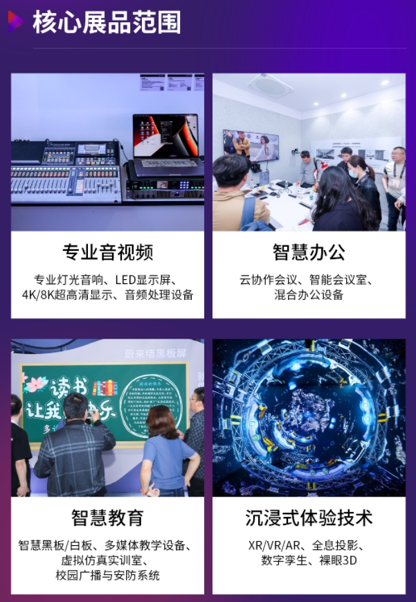 亚太地区专业视听及集成体验商贸盛会,汇聚全球优质视听厂商、系统集成商与专业音视频全产业链资源,覆盖企业智慧办公、教育、文娱、广告、智慧城市等30+垂直领域。以技术展示、高峰会议、商贸对接为核心,打造专业视听行业技术革新、生态协作的平台。